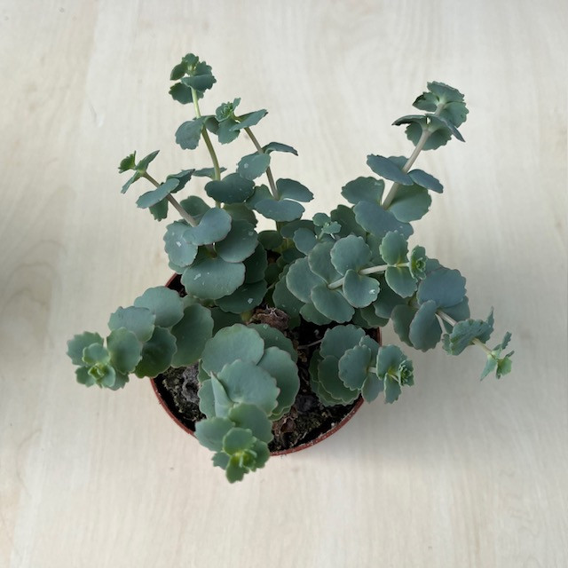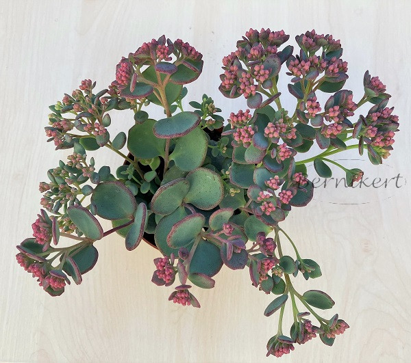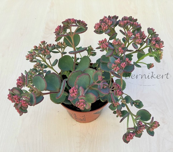 9 cm-es cserépben szállítva. Az utolsó képen látható egymás mellett az októberi varjúháj és a tarka levelű októberi varjúháj 'Mediovariegata'.