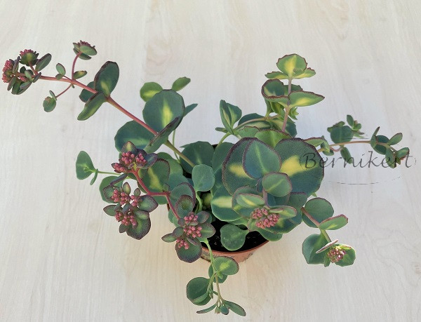 Októberben virágzó gyönyörű varjúháj (jelenleg bimbós - 08.01), innen kapta nevét. Szárai sugarasan szétállnak. Évelő növény, mely teljesen télálló nálunk. Kékesszürke levelei kerekdedek, sárga foltosak, ősszel kissé narancsosabb árnyalatot kapnak. Napos helyet, jó vízáteresztő talajt kedvel. Szárazságot jól tűri. Érdemes magaságyásba, ámpolnába ültetni. Télen visszafagyhat, de tavasszal újra kihajt.