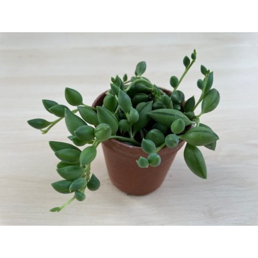 Dél-Afrikából (Namíbia) származó pozsgás növény. Csüngő, kúszó hajtásain, az apró, csepp alakú zöldes bogyók a növény levelei. (Fehér fészekvirágzatai tavasztól őszig nyílnak. Meleg- és fényigényes növény, de a tűző napot kerülni kell, mert leveleit megégetheti az erős napsütés. Tavasztól nyár végéig, a fejlődési időszakban 2 hetente tápoldatozzuk, majd ősztől egyre kevesebbet. Télen 12- 15°C- os hőmérséklet lenne az optimális, ilyenkor kevés öntözést igényel. Jó vízáteteresztő földet kedvel. Egész évben lehet a lakásban tartani, világos helyen,vagy tavasztól őszig kint a szabadban. Víz igénye kevés, de a nagy hőségben lehet rendszeresen locsolni.