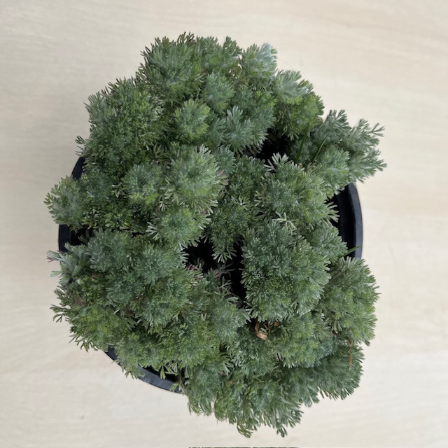 Párnát képező örökzöld évelő. Apró levelei molyosak, ezüstösek, puhák. A levélzet felett június-júiusban nyílnak érdekes, gombszerű, sárga virágai. Különleges növény, szép színfoltot lehet vele kialakítani. Magassága mindössze 5-15 cm (évszaktól függően). Napos, száraz helyen érzi jól magát.